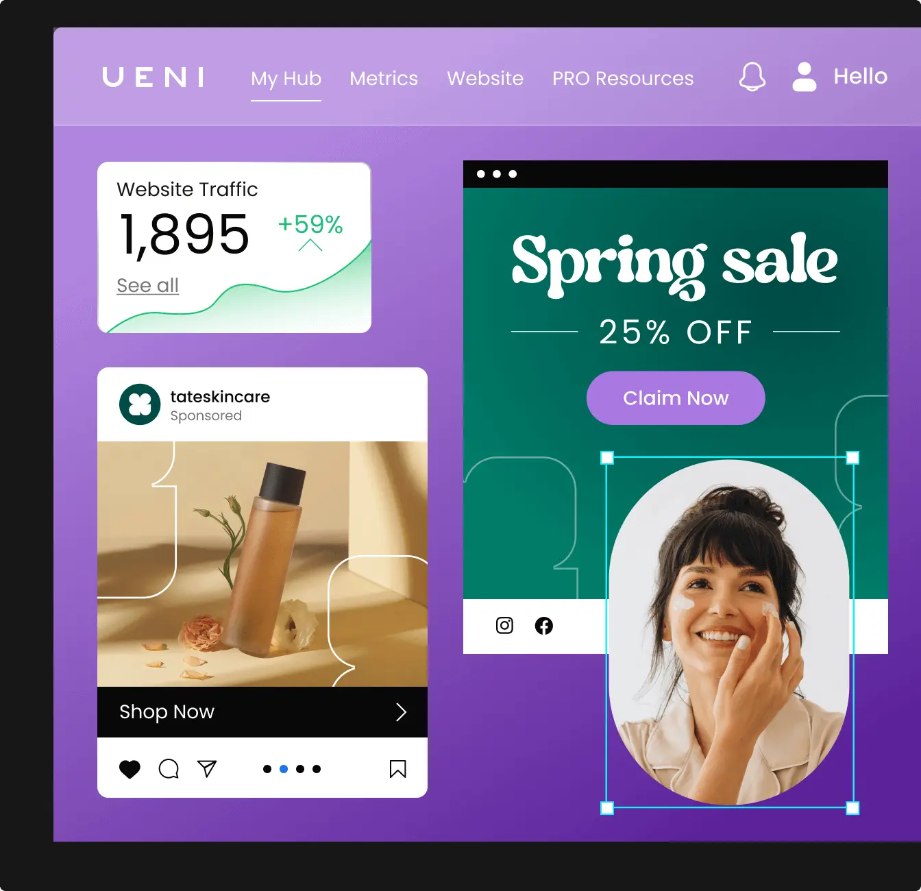 A custom domain, business email accounts, a beautiful logo, five-star reviews, and social media posts to make you stand out. Manage your reputation across trusted platforms and review sites from one place. Making your brand look more professional is only a few clicks away.
